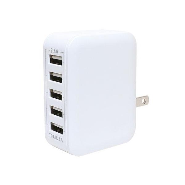 ミヨシ IPA-60U2/WH ホワイト 5V6A対応 USB-ACアダプタ 5ポートタイプ