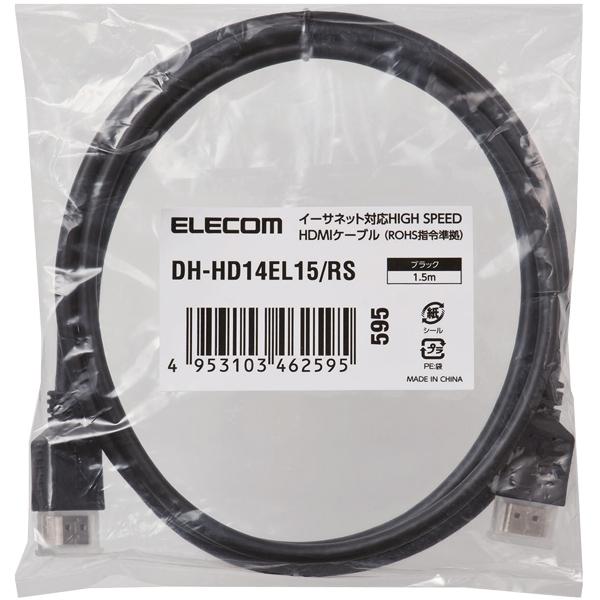 エレコム RoHS指令準拠HDMIケーブル/イーサネット対応/1.5m/ブラック/簡易パッケージ DH-HD14EL15/RS