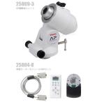 - STAR BOOK ONEコントローラーによる高精度追尾により、お手持ちのカメラで手軽に撮影をお楽しみいただけます。 ■「スライド雲台プレート」にカメラ雲台(市販品)を取付け、撮影カメラ一式を取付けて撮影します。軽量なカメラであればそのままで撮影できます。重量のあるカメラを搭載する場合はガイドパック用ウェイト軸(別売)およびバランスウェイト1kg(別売)を取付けることで、より安定した状態で撮影が可能です。■極軸望遠鏡を標準装備。3分角以内の精度で極軸を合わせることができます。スケールは自動消灯式暗視野照明。暗所でもスケールと星の視認性に優れます。自動消灯機能により、使用後の消し忘れにも配慮しました。 ■アクセサリーシューを装備。「ポーラメーター((別売)」を取付けできます。北極星が見えない環境でも素早く極軸を合わせることができます。簡易設置となりますが、広角レンズで撮影するのであれば十分な精度が得られます。■USB端子(USB Micro-B)を装備しており、USB出力付外部電源(モバイルバッテリー等)を使用できます。 (0.5A以上供給可能なDCP準拠のUSB出力付け外部電源) ※電源(外部電源、乾電池)は市販品をご使用ください。ビクセンでは用意しておりませんのでご注意ください。 「APフォトガイダー」を構成するパーツ ■AP極軸体ユニット ■赤経モーターモジュールSBOセット ■PG筒受セット ■極軸望遠鏡PF-L 【仕様】 【本体】 ●微動 電動によるウォームホイル全周微動 ●粗動 クランプフリーによる自由粗動 ●ウォームホイル φ73.5mm・歯数144山 ●ウォーム軸/赤経軸(極軸) φ11mm 材質:真鍮 φ59mm 材質:アルミ合金 ●ベアリング数 ボールベアリング4個(赤経モーターモジュール、AP極軸体ユニット×各2個) ●方位微動 微動範囲:約±6.5°ダブルスクリュー式・微動ツマミ付。1回転約1.4° ●高度微動 極軸傾斜角・微動範囲:約0〜65°※タンジェントスクリュー式・微動ツマミ付。1回転約1.9° ※低緯度地方でご使用の場合、ウェイトと三脚が干渉する場合があります。 ●極軸望遠鏡 ・仕様:6倍20mm・実視界8°・自動消灯式暗視野照明内蔵(8段調光付)・据付精度約3′ 電源:CR2032電池×1個(モニター電池付属) ・スケール:3星導入式(北半球:北極星、δUMi、51Cep 南半球:σOct、τOct、χOct)・歳差補正付(〜2040年) ●駆動/追尾 パルスモーターによる電動駆動/STAR BOOK ONEコントローラーによる高精度追尾 ●搭載可能重量 約6kg(モーメント荷重150kg・cm:不動点より25cmで約6kg) ●コントローラー接続端子 D-SUB9PINオス ●電源端子 USB Micro-B端子(メス) ●対応電源(市販品) USB出力付外部電源(0.5A以上供給可能なDCP準拠のUSB出力付外部電源<USB Micro-B端子対応)※ ●消費電流(消費電力):USB電源使用 DC5V 0.2〜0.5A(1.0〜2.5W) ●重量(本体) 2.4kg ●総重量 5.4kg ●付属品 カラー星空ガイドブック、星座早見盤 オプション品(別売) ガイドパック用ウェイト軸、バランスウェイト1kg、ポーラメーター ※電源(電池)は付属しておりません。市販品をお買い求めください。 【三脚】 ●材質・形式 アルミ製、3段伸縮式三脚(ワンタッチ式) ●サイズ・重さ 長さ570⇔1296mm、高さ(地上高)526⇔1159mm、縮長598.4mm、設置半径 50⇔710mm、3.0kg ※仕様及び外観は改善のため予告なく変更することがありますAPフォトガイダー