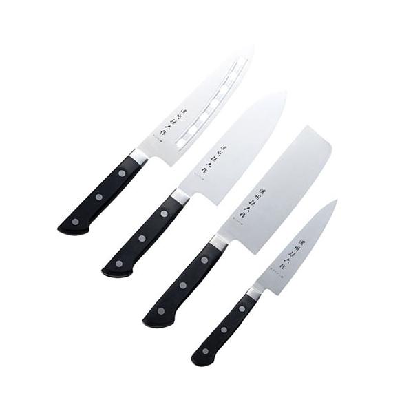 - 特徴 プロが好む重量感があり、衛生的な溶接口金構造。 金属部分が柄元まで貫通しているフルタング構造の包丁はバランスが良く丈夫です。 日本製 三徳包丁(刃渡17cm)・菜切包丁(刃渡16cm)・ペティナイフ(刃渡13.5cm)・穴明包丁(刃渡18cm)×各1・モリブデンステンレス刃物鋼、柄:ABS 仕様 サイズ 35×15.5×3.5cm 重量 約610g 入数 1個 A150I