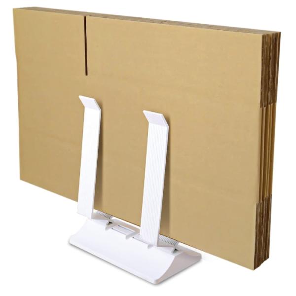 - ◇かさばる段ボールをスッキリと収納 ◇最大約10枚まで収納できます ◇挟んだまま、ヒモ等でまとめることも可能 配送便等で品物が届くたびに溜まっていく「段ボール」。この段ボールを、皆さんはどのように保管してますか?。本製品は、処分の日までキレイにまとめて整理保管できる専用ストッカーです。厚みにもよりますが、最大約10枚までストックが可能。挟み込み部の底には隙間があって紐などが通せるので、まとめる時に便利です。また、段ボール以外の収納ラックとしても、例えば、手提げ紙袋や雑誌のストッカーとしても使えますよ。 ●サイズ/約幅28×奥行15×高さ34.5cm ●重量/約500g ●材質/本体:リサイクルABS樹脂 すべり止め:シリコーンゴム ●収納目安/約10枚 ●カラー/ホワイト、ブラック ●日本製 ※簡易組立式日本製 段ボールストッカー