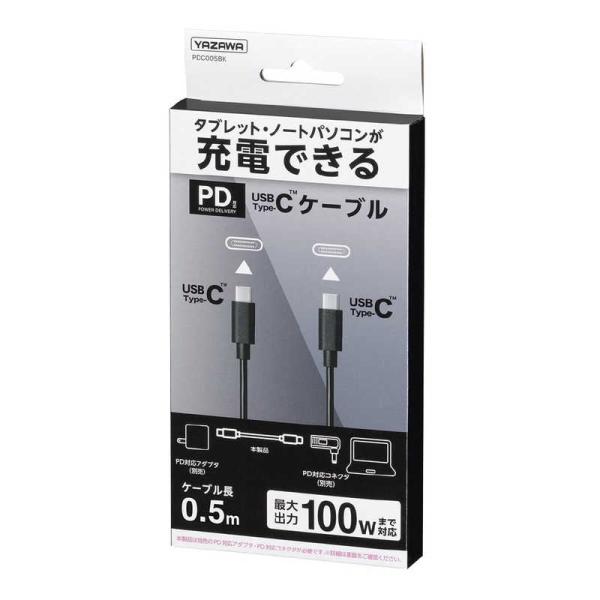 ヤザワ PD100W対応ケーブル50cm TypeC PDC005BK