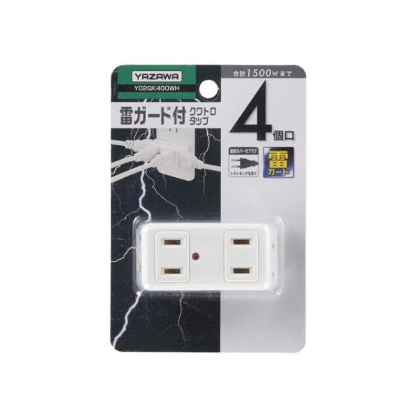 電源タップ 雷ガードタップ YAZAWA ヤザワ コンセント4口 コンパクト 絶縁カバー 雷ガード 雷ガード付4個口 クワトロタップ ホワイト Y02QK400WH