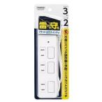 雷ガード付延長コード2m3個口 ホワイト 個別スイッチ 節電タップ 安全シャッター LEDランプ 3個口フラット電源