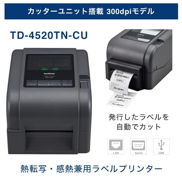 ブラザー カッターユニット搭載 熱転写・感熱兼用 ラベルプリンター TD-4520TN-CU (4インチ幅/USB・シリアル・有線LAN/300dpi)