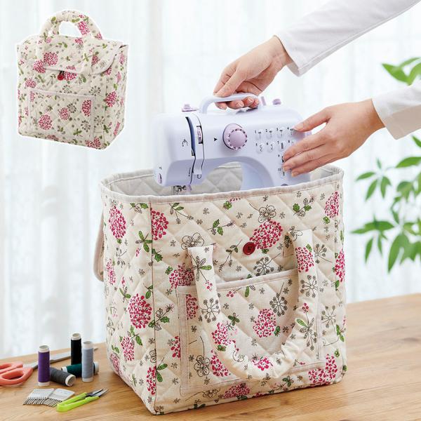 コンパクトミシン キルトバッグ 完成品 | ミシンカバー ミシンケース ミシン かばん カバン 鞄 持ち運び ポケット付き 底板付き 丈夫 かわいい 花柄 人気