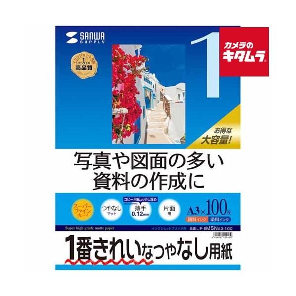 - 【商品解説】〔インクジェットプリンタ:つやなしマット紙(片面印刷用・スーパーファイン・薄手)〕際立つ白さで、鮮明でクリアな画像を表現するマットタイプのインクジェット用紙(A3サイズ・100枚)●つやなしマット紙の中では最高グレードの用紙です。●白色度が非常に高く、鮮明でクリアな画像を再現します。●高発色マット層により、画像濃度が高く、鮮明な発色が得られます。●写真画像入りの特別な会議やプレゼン資料の印刷に最適です。【スペック】●型式:JP-EM5NA3-100(JPEM5NA3100)●JANコード:4969887424469サイズ:A3厚さ:0.12±0.005mm入数:100枚印刷対応面(プリンタ用紙):片面仕様1:タイプ・特性:【つやなしマット:スーパーファイン】つやのないマット紙で写真を美しく表現するスーパーファイングレードです。【片面印刷】裏表があり、裏面には印刷できません。仕様2:対応インク:染料・顔料この商品は宅配便でお届けする商品です出荷可能日から最短日時でお届けします。※出荷完了次第メールをお送りします。配送サービス提供エリアを調べることができます「エリア検索」をクリックして、表示された画面にお届け先の郵便番号7桁を入力してください。ご購入可能エリア検索お買い上げ合計3,980円以上で送料無料となります。※3,980円未満の場合は、一律550円(税込)となります。●出荷可能日から最短日時でお届けします。(日時指定は出来ません。) ※お届け時に不在だった場合は、「ご不在連絡票」が投函されます。 「ご不在連絡票」に記載された宅配業者の連絡先へ、再配達のご依頼をお願いいたします。●お届けは玄関先までとなります。●宅配便でお届けする商品をご購入の場合、不用品リサイクル回収はお受けしておりません。●全て揃い次第の出荷となりますので、2種類以上、または2個以上でのご注文の場合、出荷が遅れる場合があります。詳細はこちら■商品のお届けについて商品の到着日については、出荷完了メール内のリンク(宅配業者お荷物お問い合わせサービス)にてご確認ください。詳しいお届け目安を確認する1度の注文で複数の配送先にお届けすることは出来ません。※注文時に「複数の送付先に送る」で2箇所以上への配送先を設定した場合、すべてキャンセルとさせていただきます。