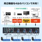- DisplayPortディスプレイ、USBキーボード、USBマウスに対応しUSB3.1(3.0)ハブも切替え出来る操作性に優れたパソコン自動切替器(4ポート)。※箱にキズ、汚れがありますが商品は新品です。<特長>●1組のDisplayPortディスプレイ・USBキーボード・USBマウスで4台のパソコンを切り替えて使用できます。●最大解像度4K/3840×2160(60Hz、4:4:4)、4K/4096×2160(60Hz、4:4:4)に対応しています。1920×1200(WUXGA)、1920×1080(フルHD)にも対応し、ワイド画面出力にも対応します。●HDCP対応だから地デジやブルーレイメディアの著作権保護規制がかかった映像も再生できます。●USB3.1 Gen1(USB 3.0)対応ハブを2ポート搭載しており、USB3.1 Gen1(USB 3.0)対応機器など各種USBデバイスを2台のパソコンで切り替えて共有することができます。さらに単独切替も可能なので別のパソコンでUSB機器を動作させながら他のパソコンで作業をする、ということも可能です。●スピーカー、マイクの共有も可能です。単独切替にも対応しておりコンソールデバイスとスピーカー・マイクは別々に切替ができます。パソコンで作業中に別のパソコンから音楽を流す、作業状況を音声で確認することが可能です。●フロントパネルにもスピーカー・マイクポートを搭載しています。手軽に接続・取り外しができるのでSkypeなどIP電話の利用時に便利です。●KVM、USB3.1 Gen1(USB 3.0)ハブ、オーディオの独立切替が可能です。●キーボードポートをエミュレーションしているため、再起動(リブート)時にポートを切り替えなくても完全起動が可能です。●ホットキー、本体切替ボタン、2通りの切替方法に対応しています。●マウス・キーボードのみの接続も可能です。(DisplayPortディスプレイはパソコンへ直結して使用)●ソフトウェアのインストール不要で、接続するだけで全ての機能を使用することができます。●全てのパソコンをモニタリング可能なオートスキャン機能搭載です。<仕様>■主な対応解像度:4096×2160(60Hz 、4:4:4)4096×2160(60Hz 、4:2:0)3840×2160(60Hz 、4:4:4)3840×2160(60Hz 、4:2:0)1920×1200(60Hz)1920×1080(60Hz)■インターフェース:(パソコン用)ディスプレイ/DisplayPort(タイプA)メス×4 キーボード・マウス・USB3.1 Gen1(USB 3.0)ハブ/USB Bコネクタメス×4スピーカー/3.5mmステレオミニジャック×4マイク/3.5mmステレオミニジャック×4(コンソール用)ディスプレイ/DisplayPort(タイプA)メス×1キーボード/USB Aコネクタメス×1マウス/USB Aコネクタメス×1スピーカー/3.5mmステレオミニジャック×2マイク/3.5mmステレオミニジャック×2USB3.1 Gen1(USB 3.0)ハブ/USB Aコネクタメス×2■電源:ACアダプタ(DC5V 4A)■消費電流:0.46A■切替方式:本体ボタン切替、ホットキー切替、オートスキャン切替■切替音:ビープ音ON・OFF設定可能■動作時温度・湿度:0〜50℃ 湿度80%以下(結露なきこと)■保存時温度・湿度:−20〜60℃ 湿度/80%以下(結露なきこと)■最大パソコン接続台数:4■サイズ:W260.3×D74.7×H42.9mm■重量:851g■付属品:DisplayPortケーブル(1.5m)×4、USB3.1 Gen1(USB 3.0)ケーブル(1.8m)×4、オーディオケーブル(1.8m)×4、マイクケーブル(1.8m)×4、ACアダプタ×1、電源コード×1、取扱説明書(保証書付き)■メーカー保証期間:1年■対応機種:Windows搭載(DOS/V)パソコン、またはノートパソコン、Apple Macシリーズ※USB Aコネクタ メス、DisplayPort出力を持つ機種。■対応キーボード:USBキーボード■対応マウス:USBマウス■対応ディスプレイ:DisplayPort入力端子を標準搭載しているテレビ・パソコン用ディスプレイ■対応解像度:最大4K/2K(4096×2160)■対応スピーカー・マイク:3.5mmステレオミニプラグ対応スピーカー・マイク■対応OS:Windows 11・10・8.1・8・7・Vista・XP(32/64bit、各Edition対応)Windows Server 2003/2003 R2/2008/2008 R2/2012/2012R/2016/2019macOS 12・11、macOS 10.12〜10.15、Mac OS X 10.6〜10.11、Linux(CentOS、uBuntu、OpenSUSE) ※キーボードに搭載されているUSBハブポートは本製品経由では使用することはできません。キーボードに搭載されている特殊ボタンなどドライバーを要する機能についても本製品経由では使用することができません。※指紋認証機能付キーボード、トラックパッド付キーボードなどでは動作しないことがあります。※Bluetoothキーボード・Bluetoothマウスには非対応です。※ゲーミングキーボードなどのNキーロールオーバー機能を搭載したキーボードは動作対応しません。※本製品はACアダプタの接続が必須です。未接続状態では動作しません。※すべてのパソコン・キーボード・マウスの動作を保証するものではありません。※キーボード、マウスにおいてドライバーのインストールを要する特殊なボタン、ファンクションキーについては本切替器経由では動作しないことがあります。※ワンタッチボタンによるレジューム・サスペンド機能は対応しておりません。<関連キーワード>4969887594032 SW-KVM4HDPU,DisplayPort,パソコン自動切替器,4:1,4ポート,仕様ちがい2:14:1