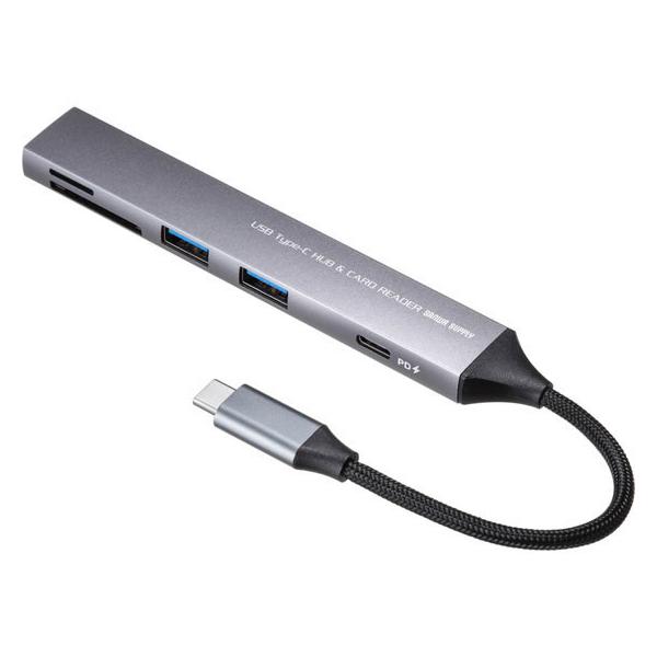 スリムなカードリーダー付きUSB-C接続のUSBハブ。USB PD100W入力に対応。USB-A×2、USB-C×1。ケーブル長10cm。断線に強いメッシュケーブル。ケーブル一体型。持ち運びやすいスリムでコンパクトな設計。<特長>●超スリムで持ち運びに便利なUSB 5Gbps 3ポートのUSBハブ(カードリーダー付き)です。●断線に強いメッシュケーブルタイプです。●高級感のあるアルミボディです。●USB PD対応でUSB Type-Cポートを使ってパソコンを充電することができます。※PD対応パソコンである必要があります。●USB Aポートが2個、Type-Cポートが1個ついており合計3台のUSB機器を接続することができます。●Type-Cコネクタ搭載で、Type-Cポートを搭載したパソコンなどで使用できます。●スーパースピードモード(5Gbps・規格値)に対応しています。●コンパクトで持ち運びに便利なサイズです。<仕様><PC接続端子>■コネクタ形状:USB Type-C■対応規格:USB 5Gbps(USB3.2 Gen1/3.1 Gen1/3.0)準拠※USB5GbpsはUSB-IF(USB Implementers Forum)によりUSB3.2/3.1/3.0が名称変更されたもので同じ規格です。■ケーブル長:約10cm■ケーブルタイプ:ケーブル一体型<USBポート>■ポート数:3ポート■最大データ転送速度:5Gbps(理論値)■USB Type-Cメス/USB 2.0:1ポート■USB Aメス/USB 5Gbps:2ポート■供給電流:3000mA(全ポート合計)<カードリーダー>■スロット:SDメモリカード、microSDカード■対応メディア規格:SDXC、microSDXC■最大対応メディア:SDカード/1TBmicroSDカード/1TB<電源>■電源供給方式:バスパワー/セルフパワー(電源接続時)■USB PD入力ポート:あり■USB PD最大入力:100W※ご使用のパソコンやPD電源アダプターによってはパソコンに添付の電源アダプターの使用を推奨する警告が表示されることがありますが、使用上問題ありません。■本体消費電力:10W<共通仕様>■ACアダプタ:付属なし■保証期間:ご購入より1年■対応機種:Windows搭載(DOS/V)パソコン、Apple Macシリーズ、iPad、Chrome OS搭載パソコン※USBポート(Type-Cメス)を持ち、パソコン本体メーカーがUSBポートの動作を保証している機種。※USB 5Gbps(USB3.2 Gen1)の環境で動作させるためにはパソコン本体にUSB 5Gbps(USB3.2 Gen1)ポートが必要です。※USB Type-C接続のモニターには対応していません。※映像出力に対応したType-Cポートのみの対応です。(DisplayPort Alt Mode)※パソコン・USB機器により対応できないものもあります。※記載の社名及び製品名は、一般に各社の商標または登録商標です。■対応OS:Windows 11・10macOS(Sequoia)15、macOS(Sonoma)14、macOS(Ventura)13、macOS(Monterey)12、macOS(BigSur)11Android 11・12・13・14・15iOS 17・18iPadOS 17・18ChromeOS<関連キーワード>USBハブ USB-C接続 5-in-1 薄型 スリム カードリーダー付き USB 5Gbps Type-C PD100W ケーブル10cm USB-A×2 USB-5TCPC28GM 4969887596159他のタイプType-Cコネクタ・USB A3ポートType-Cコネクタ・USB A2ポート・Type-C1ポートType-Cコネクタ・USB A1ポート・Type-C2ポートAコネクタ・USB A3ポートType-Cコネクタ・USB A×2・Type-C×1・PD対応Type-Cコネクタ・USB A×1・Type-C×2・PD対応Type-Cコネクタ直付・USB A×1・Type-C×1・PD対応Type-Cコネクタ直付・Type-C×2・PD対応