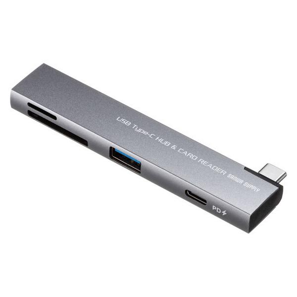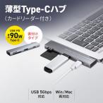 - 直挿しできてコンパクトなカードリーダー付きUSB-C接続のUSBハブ。USB PD100W入力に対応。USB-A×1、USB-C×1。持ち運びやすいスリムでコンパクトな設計。<特長>●超スリムで持ち運びに便利なUSB 5Gbps 2ポートのUSBハブ(カードリーダー付き)です。●高級感のあるアルミボディです。●USB PD対応でUSB Type-Cポートを使ってパソコンを充電することができます。※PD対応パソコンである必要があります。●USB Aポートが1個、Type-Cポートが1個ついており合計2台のUSB機器を接続することができます。●Type-Cコネクタ搭載で、Type-Cポートを搭載したパソコンなどで使用できます。●スーパースピードモード(5Gbps・規格値)に対応しています。●コンパクトで持ち運びに便利なサイズです。<仕様><PC接続端子>■コネクタ形状:USB Type-C■対応規格:USB 5Gbps(USB3.2 Gen1/3.1 Gen1/3.0)準拠※USB5GbpsはUSB-IF(USB Implementers Forum)によりUSB3.2/3.1/3.0が名称変更されたもので同じ規格です。■ケーブルタイプ:コネクタ一体型<USBポート>■ポート数:2ポート■最大データ転送速度:5Gbps(理論値)■USB:Type-Cメス(USB 2.0)/1ポートUSB Aメス(USB 5Gbps)/1ポート■供給電流:3000mA(全ポート合計)<カードリーダー>■スロット:SDメモリカード、microSDカード■対応メディア規格:SDXC、microSDXC■最大対応メディア:SDカード/1TBmicroSDカード/1TB<電源>■電源供給方式:バスパワー/セルフパワー(電源接続時)■USB PD入力ポート:あり■USB PD最大入力:100W※ご使用のパソコンやPD電源アダプターによってはパソコンに添付の電源アダプターの使用を推奨する警告が表示されることがありますが、使用上問題ありません。■本体消費電力:10W<共通仕様>■ACアダプタ:付属なし■保証期間:ご購入より1年■対応機種:Windows搭載(DOS/V)パソコン、Apple Macシリーズ、iPad、Chrome OS搭載パソコン※USBポート(Type-Cメス)を持ち、パソコン本体メーカーがUSBポートの動作を保証している機種。※USB 5Gbps(USB3.2 Gen1)の環境で動作させるためにはパソコン本体にUSB 5Gbps(USB3.2 Gen1)ポートが必要です。※USB Type-C接続のモニターには対応していません。※パソコン・USB機器により対応できないものもあります。※記載の社名及び製品名は、一般に各社の商標または登録商標です。■対応OS:Windows 11・10macOS(Sequoia)15、macOS(Sonoma)14、macOS(Ventura)13、macOS(Monterey)12、macOS(BigSur)11Android 11・12・13・14・15iOS 17・18iPadOS 17・18ChromeOS<関連キーワード>USBハブ USB-C接続 4-in-1 直挿し 薄型 スリム カードリーダー付き USB 5Gbps Type-C USB-A PD100W コンパクト USB-5TCPC30GM 4969887596173他のタイプType-Cコネクタ・USB A3ポートType-Cコネクタ・USB A2ポート・Type-C1ポートType-Cコネクタ・USB A1ポート・Type-C2ポートAコネクタ・USB A3ポートType-Cコネクタ・USB A×2・Type-C×1・PD対応Type-Cコネクタ・USB A×1・Type-C×2・PD対応Type-Cコネクタ直付・USB A×1・Type-C×1・PD対応Type-Cコネクタ直付・Type-C×2・PD対応