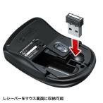 - -------------------------------------------------------------- 画像はイメージです。 ※ PC環境により実際の色味や質感と異なって表示される場合がございます。 ※ 部品・パーツなどの一部の商品では本体の商品画像を使用しております。 ※ 製品の仕様・画像・パッケージは、メーカー側から予告なく変更される場合があります。 -------------------------------------------------------------- コンパクト、静か、暮らしになじむカラーバリエーションのワイヤレスマウス。iO+(イオプラス)。●指にフィットする形状で持ちやすい、小型サイズのワイヤレスマウス”iO+(イオプラス)”です。●全てのスイッチに静音スイッチを搭載しており、公共の場や会議中の操作などでの使用に便利です。●ブルーLED光学センサーを搭載し、スムーズな操作が可能です。※鏡など光を反射する素材や、ガラスなど透明な素材の上でご使用になると、カーソルがスムーズに動かない場合があります。また、規則正しいパターンの上ではトラッキング能力が低下する場合があります。●ケーブルを気にせず使えるワイヤレスタイプです。電波障害に強い2.4GHzデジタル帯で、通信範囲が半径10mの広範囲で安定したデータ通信が可能です。●用途に合わせてカーソルスピードを800、1200、1600カウントに切替えることができます。●レシーバーはノートパソコンに差したままで持ち運びや保管ができる、小型レシーバーです。●レシーバーは本体に収納可能で、持ち運びの際でも紛失の心配がありません。●単三乾電池1本で動作可能です。●本体裏面に電源スイッチがあり、不使用時に電池の消耗を防止できます。【仕様】カラー:ブラックインターフェース:USB HID Ver.1.1準拠※USB3.2/3.1/3.0/2.0インターフェースでもご使用になれます。コネクタ形状:USB Aコネクタ接続方式:2.4GHzワイヤレス通信範囲:木製机(非磁性体):半径約10m、スチール机(磁性体):半径約2m※電波の通信範囲は使用環境によって異なります。分解能:800・1200・1600カウント/インチ※カウント切替えボタン付き。読み取り方式:光学センサー方式(ブルーLED)ボタン:左ボタン、右ボタン、ホイール(スクロール)ボタン静音:左右ボタン、ホイールボタン、カウント切替えボタン電池性能:連続動作時間/約125時間連続待機時間/約1000時間使用可能日数/約117日※1日8時間パソコンを使用中に、マウス操作を5%程度行う場合。(満充電時)※自然放電などを考慮しないサンワサプライ計算値であり保証値ではありません。※使用期間により、徐々に性能が低下します。予めご了承ください。サイズ:マウス/W52×D90×H34.2mmレシーバー/W14.8×D18.5×H6.1mm重量:マウス/約43.9gレシーバー/約2gセット内容:マウス、レシーバー、単三乾電池×1(テスト用)、取扱説明書 【メーカー・ブランド】 サンワサプライ / さんわさぷらい / SANWA 【#26】iO+ イオプラス 静音ワイヤレスブルーLEDマウス sanwa シンプルに!カジュアルに!クールに! どんなワークシーンにもスッと溶け込む ちょうどいいサイズと指にフィットするデザイン COLOR & SIZE 全ボタン静音設計&握りやすい形状 カチカチ鳴らない全ボタン静音設計 静かな場所や会議中でも音を気にせずに使用できます。 指先にフィットする絶妙なサイズ感 「つまみ持ち」をしやすく握りやすい形状で、 手の小さな女性や、男性、子ども問わず使いやすいです。 ケーブル不要!USB A ワイヤレス接続 レシーバー付きで、USB Aポートを搭載したパソコンなどと接続できます。 カーソルスピード設定可能 用途やお好みに合わせてカウント数を3段階調整できます。 高精度ブルーLED光学センサー カーソル飛びも少なく快適に使用できます。 電源スイッチで電池を節約できる 不使用時の電池消耗を防止する電源ON・OFFスイッチ付きです。 iO+ ワイヤレスブルーLEDマウス一覧を見る > iO+ イオプラスシリーズ アイテムを見る >