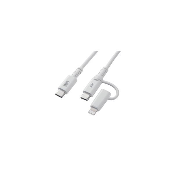 - 【1本で2役!Lightning・Type-C対応の2in1ケーブル。MFi認証品。ホワイト。】 検索キーワード:サンワサプライ|SANWA SUPPLY ケーブル|USBケーブル メーカー型番:KB-IPLTCCP6010W KBIPLTCCP6010W
