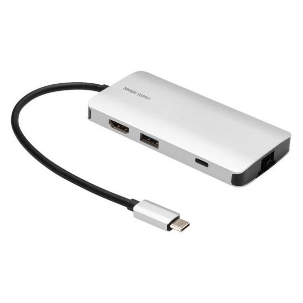 - ■商品内容●Type-Cケーブル1本でHDMIディスプレイやUSB機器、有線LANの拡張接続ができるType-Cモバイルドッキングステーションです。 ●MACアドレスのパススルー機能に対応。 ※パソコンがMACアドレスパススルーの機能に対応したパソコンのみ対応。 ●Type-Cケーブル1本の接続で、大画面ディスプレイとUSBデバイスを快適に操作し、外出や会議など移動時にはType-Cケーブル1本を抜くだけでさっと持ち運ぶことができます。 ●USB Type-C接続でのHDMIディスプレイ増設【DisplayPortAlternate Mode】に対応するためのソフトウェアのインストールなしで、簡単にマルチディスプレイ環境(ミラーモード/拡張モード)を実現できます。 ●4K/30Hz HDRに対応しており、美しく高精細なHDMI信号を出力できます。 ●USB Type-Cでの【USB Power Delivery(USB PD)】に対応しており、接続したパソコンへの給電も本製品経由で可能です。最大100Wまでの充電に対応しています。 ●Gigabit Ethernetに対応しているので、Gigabitネットワーク環境にも対応し、Type-Cケーブル1本で有線LAN接続できます。 ※Wake On LAN機能に対応しますがパソコンの機種によって対応が異なりますので動作保証はしていません。■商品スペック【PC接続端子】 ■コネクタ形状 : USB Type-C ■対応規格 : USB 5Gbps(USB3.2 Gen1/3.1 Gen1/3.0)準拠 ※USB 5GbpsはUSB-IF(USB Implementers Forum)によりUSB3.2 Gen1(USB3.1 Gen1/USB3.0)が名称変更されたもので同じ規格です。 ■USB PD最大出力 : 85W ■ケーブル長 : 約15cm ■ケーブルタイプ : ケーブル一体型 【USBポート】 ■ポート数 : 4ポート ■最大データ転送速度(理論値) : 5Gbps ■USB Type-Cメス/USB 5Gbps : 1ポート PD対応ポート(PD&データ 対応) ※USB Type-C接続のモニターには対応していません。 ■USB Aメス/USB 5Gbps : 3ポート ■供給電流 : 最大3000mA (全ポート合計 : バスパワー時) ※接続する機器の消費電流が本製品の供給電流を超える場合、バスパワーで正常に動作しない場合があります。 ※セルフパワー時は指定のUSB Aポート 1ポートより1500mA供給することができます。 【電源】 ■電源供給方式 : バスパワー/セルフパワー(電源接続時) ■本体消費電力 : 15W ■USB PD入力ポート : あり ■USB PD最大入力 : 100W ※ご使用のパソコンやPD電源アダプターによってはパソコンに添付の電源アダプターの使用を推奨する警告が表示されることがありますが、使用上問題ありません。 【映像出力ポート】 ■対応出力ディスプレイ数 : 1台 ■最大対応解像度 : 4K/30Hz ※記載の対応解像度はご使用のパソコンがDisplayPort Alt Mode(DP1.4以上)に対応している必要があります。 ※8K解像度での出力はディスプレイが8K解像度に対応しており、出力するコンテンツも8K解像度に対応している必要があります。 ■最大対応解像度/リフレッシュレート : 3840×2160 最大7680×4320(8K/30Hz) 最大3840×2160(4K/144Hz・120Hz・60Hz) ■HDR対応 : 対応 ■HDCP : 2.3,2.2,2,1.4 ■HDMI : 1ポート 【LANポート】 ■ポート形状 : RJ-45ポート(Auto MDI/MDI-X),Auto-Negotiation対応 ※Wake On LAN機能に対応しますがパソコンの機種によって対応が異なりますので動作保証はしておりません。 ※接続機器により、有線ネットワークを使用するには、Wi-FiをOFFにする必要があります。 ■対応規格 : IEEE802.3(10BASE-T),IEEE802.3u(100BASE-TX),IEEE802.3ab(1000BASE-T) ■伝送速度(理論値) : 1000Mbps,100Mbps,10Mbps ※通信速度についてUSB5Gbps(USB3.2 Gen1)接続時のみ1000BASE-Tに対応します。 ■アクセス方式 : CSMA/CD 【カードリーダー】 ■スロット : SDメモリカード,microSDカード ■対応メディア規格 : SDXC,SDHC,SD,microSDXC,microSDHC,microSD ■最大対応メディア(SDカード) : 2000GB ■最大対応メディア(microSDカード) : 2000GB 【共通仕様】 ■対応OS Windows : 11,10 ■対応OS mac : macOS(Sequoia) 15、macOS(Sonoma) 14、macOS(Ventura) 13、macOS(Monterey) 12、macOS(BigSur) 11 ■対応OS iPadOS : iPadOS 17・18 ■対応OS ChromeOS : ChromeOS ■対応機種 : Windows搭載(DOS/V)パソコン、Apple Macシリーズ、Chrome OS搭載パソコン、iPad ※USBポート(Type-Cメス)を持ち、パソコン本体メーカーがUSBポートの動作を保証している機種。 ※USB5Gbps(USB3.2 Gen1)の環境で動作させるためにはパソコン本体にUSB5Gbps(USB3.2 Gen1)ポートが必要です。 ※USB Type-C接続のモニターには対応していません。 ※映像出力に対応したType-Cポートのみの対応です。(DisplayPort Alt Mode) ※パソコン・USB機器により対応できないものもあります。 ■セット内容 : L型コネクタ ※取説はWEBのみです。 【共通】 ■全ポート数 : 7in1■送料・配送についての注意事項●本商品の出荷目安は【4 - 7営業日 ※土日・祝除く】となります。●お取り寄せ商品のため、稀にご注文入れ違い等により欠品・遅延となる場合がございます。●本商品は仕入元より配送となるため、沖縄・離島への配送はできません。