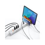 - 2P・5個口の電源タップで、USB充電ポートが3つ付いています。 USBポートはType-Cが1ポートあり、PD30W対応で高速充電も可能です。 スマートフォンやタブレットを3台まで立て掛けられる、スライドスタンド付きです。 恐ろしい雷から機器を守る、雷ガードを内蔵しています。 トラッキング火災予防絶縁キャップ付きのL型プラグを採用しています。