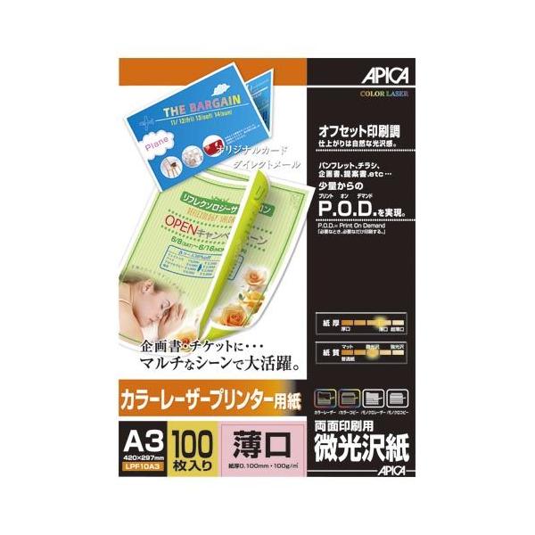 アピカ LPF10A3 カラーレーザープリンター用紙 A3 両面印刷用 微光沢 薄口(100枚)