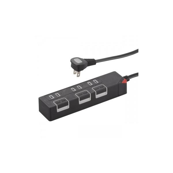 節電タップ HS-T1146K 個別押しボタンスイッチ付き 3個口 1.5m ブラック 00-1146 オーム電機