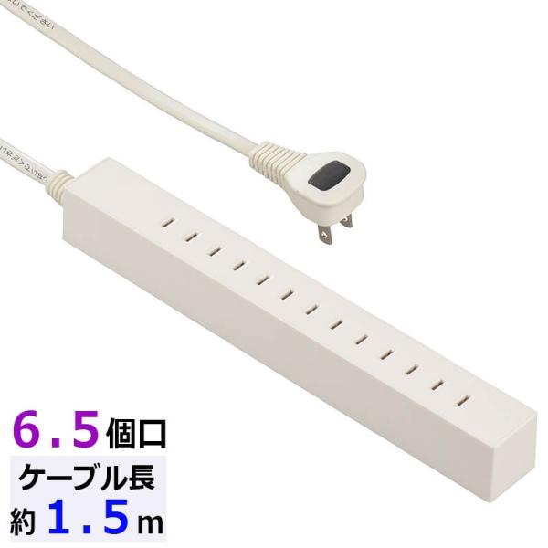 差し込み自由なスリムタップ 6.5個口 1.5m|HS-T6515L-W 00-5055 OHM オーム電機