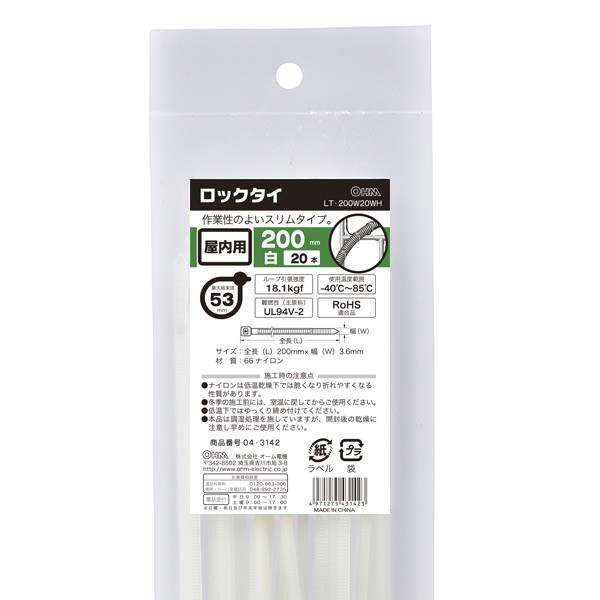 結束バンド ロックタイ 200mm 白 20本入り LT-200W20WH 04-3142 OHM オーム電機