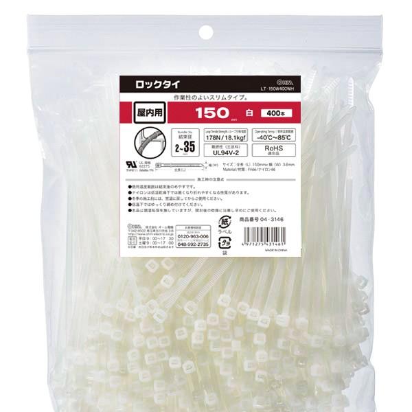 結束バンド ロックタイ 150mm 白 400本入り LT-150W400WH 04-3146 オーム電機
