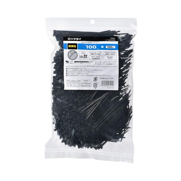 コンビニ受け取り可 オーム電機 OHM ロックタイ 100mm 耐候 黒 1000本入り LT-100W1000BK