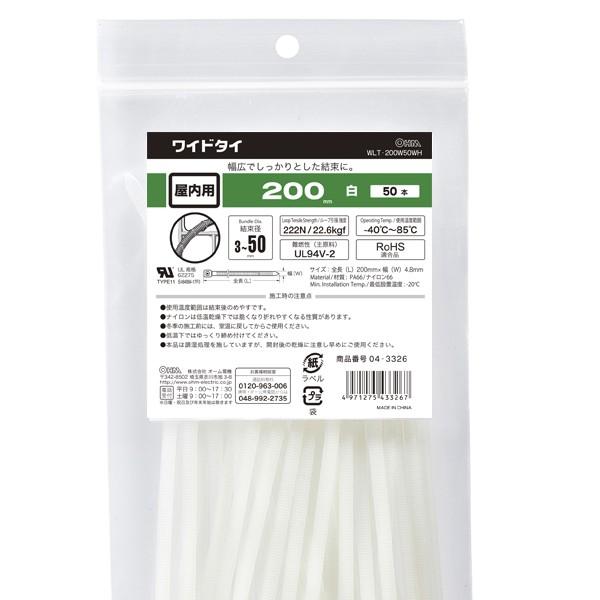 結束バンド 幅広ロックタイ 200mm 白 50本入り WLT-200W50WH 04-3326 OHM オーム電機