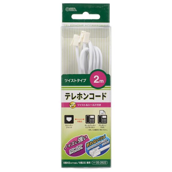 オーム電機 テレホンコード ツイストタイプ 2m [品番]05-2622