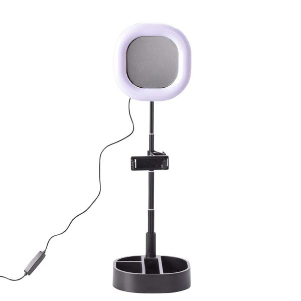 エツミ VLOGキャワミライト スクエア ブラック 収納できるリングライト/ミラー付 VE-2283