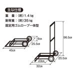 - ■商品内容【商品説明】段ボールやクーラーボックス、アルミケースなど重量物を楽々に運べるキャリーカートです。ゴムロープ一体型なので、煩わしい固定作業も簡単です。耐荷重は(約)35kg。■商品スペック●収納サイズ : 45×25.5×9cm●使用サイズ : 96.5×25.5×32cm●製品重量(約) : 1.4kg●耐荷重(約) : 35kg●固定用ゴムロープ : 本体と一体型●カラー : ブラック●原産国 : 中国■送料・配送についての注意事項●本商品の出荷目安は【4 - 7営業日 ※土日・祝除く】となります。●お取り寄せ商品のため、稀にご注文入れ違い等により欠品・遅延となる場合がございます。●本商品は仕入元より配送となるため、沖縄・離島への配送はできません。[ VE-6912 ]