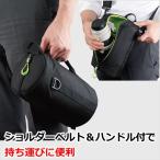 適度なクッション厚とソフトなクッション素材でレンズを保護。かさばりにくく、持ち運びのしやすいショルダーベルト付きレンズポーチです。