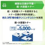 - ■約5000ページ印刷可能な超・大容量トナー(別売)に対応。トナー交換の手間を軽減。トナーは前面から交換可能■本体製品寿命7年または約5万ページの高耐久を実現。■A4片面 約34枚/分の高速印刷が可能。印刷専用で高速コンパクトなプリンター