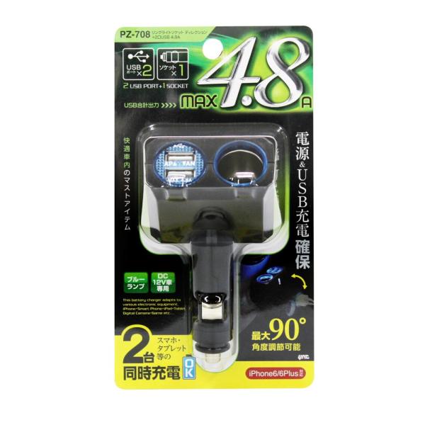 - ◇タブレットもスマートフォンも同時に充電可能。 ◇ソケットの角度を最大90°まで変えて使用可能。 ◇配線が不要。アクセサリー電源ソケットに差し込むだけ。 ◇ソケットリングと通電モニターランプがブルーに光る。 ◇ヒューズ付き(内蔵3A(USB側)・10A(ソケット側))。 ◇USB最大許容出力電流:約4.8A(2台同時充電約2.4A ×2の場合) 【製品詳細】 ■カラー:ブラック ■ソケット最大許容出力電流:7A ■通電モニターランプ付き ブルー光 ■DC12V ■USBポート×2 ■JANコード:4979969009309 ※こちらの商品はお取り寄せ商品となります。製造メーカーにて欠品の場合はお待ちいただくか、 誠に勝手ながらキャンセルをさせていただく場合が御座いますのであらかじめご了承下さい。 【槌屋ヤック USBポート付 増設ソケット】 ■槌屋ヤック PZ-621 3連リングライトソケット+USBポート付プラグ 3m PZ621 ■槌屋ヤック PZ-707 リングライトソケット ツイン+USB 2.4A PZ707 ■槌屋ヤック PZ-708 リングライトソケット ディレクション+2口USB 4.8A PZ708 ■槌屋ヤック PZ-709 リングライトソケット+2口USB 4.8A PZ709 ■槌屋ヤック PZ-711 リングライトソケット ツイン+2口USB 4.8A PZ711 ■槌屋ヤック PZ-788 リバーシブルUSBソケット ディレクション 4.8A PZ788 ■槌屋ヤック PZ-789 リバーシブルUSBソケット セパレート 4.8A PZ789 ■槌屋ヤック PZ-790 リバーシブルUSBソケット ツインディレクション 4.8A PZ790 ■槌屋ヤック PZ-791 リバーシブルUSBソケット ツインセパレート 4.8A PZ791 ■槌屋ヤック PF-325 4連リバーシブルUSB+DCソケット 4.8A PF325 ■槌屋ヤック PF-341 アングルUSBソケット ディレクション 2.4A PF341 ■槌屋ヤック PF-342 アングルUSBツインソケット ディレクション 2.4A PF342 ■槌屋ヤック CE-488 USBツインソケット 4.8A ディレクション 12/24V CE488 ■槌屋ヤック CE-489 USBツインソケット 4.8A セパレート 12/24V CE489 ※他のカー用品をお探しの方はこちらをクリックして下さい。 ※他のソケット・プラグ・USB関連製品をお探しの方はこちらをクリックして下さい。 ※他の車内アクセサリーをお探しの方はこちらをクリックして下さい。 ※他の車載用タブレット・モバイルホルダーをお探しの方はこちらをクリックして下さい。 ※他の携帯充電器・スマホ・iPhone充電器をお探しの方はこちらをクリックして下さい。 キーワード カー用品 車用 カー用品 増設 携帯電話充電器 スマホ充電器 スマートフォン充電器 iPhone充電器 スマートフォン充電器 加熱式タバコ アイコス グロー プルームテック シガーソケット 充電器 コンセント シガーライター カープラグ ソケット プラグ USB ポート 電源 でんげん デンゲン 関連商品槌屋ヤック PF-342 アングルUSBツインソケット ディレクション...アークス AXS X-193 2.4A 2USBポート&ライトニングケ...槌屋ヤック ZE-86 スリムポート ディレクション 2USB+Typ...1,417円1,423円1,455円槌屋ヤック CE-488 USBツインソケット 4.8A ディレクショ...セイワ D612 変換USBリールケーブルC/AtoC D-612【お...セイワ D623 180 USBケーブル CtoC D-623【ネコポ...1,459円1,358円1,477円