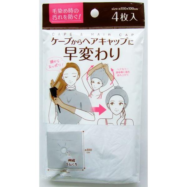 ケープからヘアキャップに早変わり 100×100cm 4枚入 (100円ショップ 100円均一 100均一 100均)