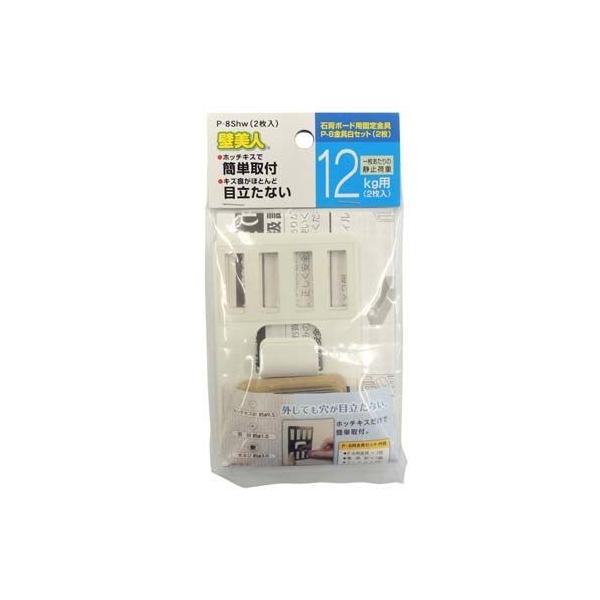 - 若林製作所 壁美人 石膏ボード用固定金具 P-8 ホワイト 2枚セット P-8SHW 4985218114625サイズ:約幅60×高さ94×厚さ1.5mm、フック幅23mm重量:45g1枚当たりの静止荷重:約12kgセット内容:金具×2枚、専用針×2個、フィルム×4枚