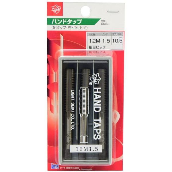 - 【商品説明】●ねじ穴作成やネジ穴をlきれいにする時に使用します。●並目のねじ山の修正、作成用です。●ねじ径:M12●ピッチ:1.5●お得なタップ3本組(組タップ先・中・上げ) ねじ穴 ねじ山 修正類似商品はこちらライト精機 4990052043130 ハンド875円ライト精機 4990052043109 ハンド803円ライト精機 4990052043093 ハンド2,442円ライト精機 4990052011313 ハンド1,919円ライト精機 4990052011290 ハンド1,090円ライト精機 4990052040085 ハンド1,107円ライト精機 4990052043116 ハンド803円ライト精機 4990052040092 ハンド1,276円ライト精機 4990052011412 中タッ851円ライト精機 4990052011405 中タッ1,079円ライト精機 4990052011450 中タッ1,805円ライト精機 4990052040832 左ねじ1,051円