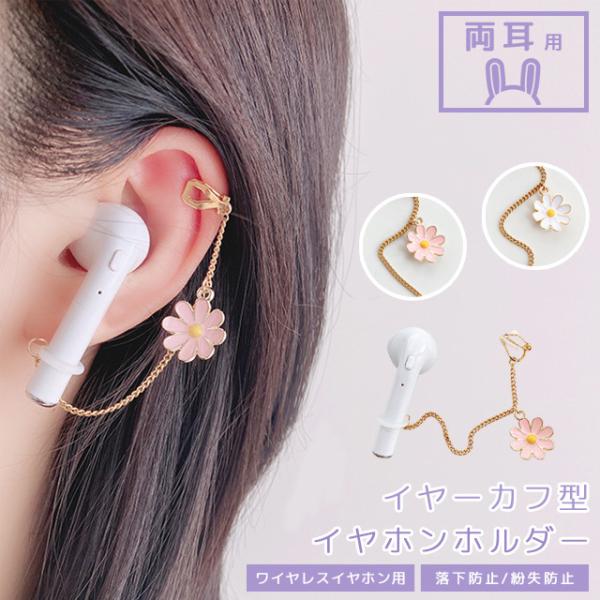 ワイヤレスイヤホン 落下防止 紛失 イヤーカフ 花 両耳用 フラワー 飾り 耳 ストラップ イヤホンホルダー チェーン GPT 10点迄メール便OK(gu1b048)