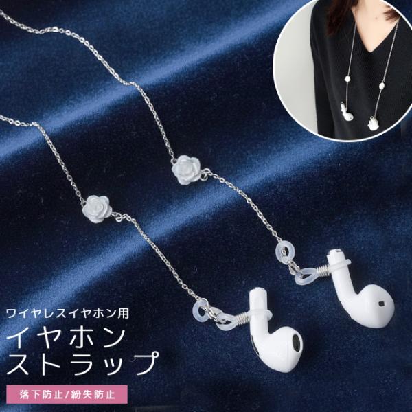 ワイヤレスイヤホン 落下防止 紛失防止 イヤホンストラップ ネックストラップ イヤホンホルダー ローズ チェーン アクセサリー GPT 10点迄メール便OK(gu1b997)