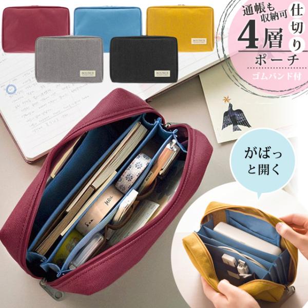 通帳 ケース 4層 仕切り ポーチ お薬手帳 パスポート A6 収納 印鑑 カード マルチケース ゴムバンド 文具 おしゃれ GPT 2点迄メール便OK(gu1c863)
