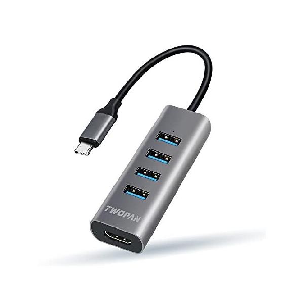【並行輸入品】 TWOPAN USB Cハブ T1-H 5-in-1 USB Type Cハブ HDMI(4K)出力 4つのUSB 3.0ポート付き Samsung Galaxy S10+/S9/S8 MacBook Air/Pro Chromebook