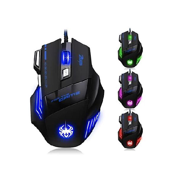 【並行輸入品】 zelotes ゲーミングマウス 7200DPI 7ボタン コンピューターマウス USB LED 光学人間工学マウス PC Mac ノートパソコン用 ブラック