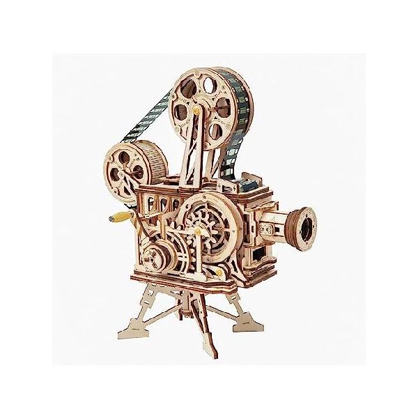 【並行輸入品】 Robotime Vitascope Mechanical Wood Kit | Assemble a Wooden Vintage Movie Projector | Includes 183 Pieces to Create a Working Reel |