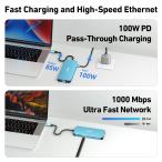 - 即時拡張: HDMI ポート x 2、VGA ポート x 1、USB 3.0 ポート x 3、SD/TF カード リーダー x 1、ギガビット イーサネット アダプター x 1、85W 電力供給ポート x 1、3.5 mm AUX スロットを USB-C に追加します。 ラップトップ — すべてを 1 つの USB-C ポートから。 この軽量ガジェットをバッグやポケットに押し込んで、ラップトップとプロジェクターを使ってビジネス プレゼンテー ションを行ったり、デスクトップ画面をモニターやテレビに拡張したりできます.マルチスクリーン ソリューション - MST 機能のサポートにより、BENFEI USB Type-C ハブは最大 3 つの最大画面出力、2*HDMI および VGA をサポートできます。 コンピュータの設定によって、画面が同じになる場合もあれば、異なる場合もあります。 解像度は、720p、1600x1200 を含む最大 3840*2160@30Hz、1920x1080@60Hz (1080p フル HD) です。 ご注意ください: サポートされる解像度は出力の組み合わせによって異なります。製品の説明を参照してください.驚異的なパフォーマンス - 3 * USB 3.0 ポート経由で最大 5 Gbps の速度でファイルを転送およびバックアップ、SD/TF カード リーダーによる写真やその他のメディアへの迅速かつ簡単なアクセス、UHS-I モードでの最大 160 MB/秒の転送速度、充電 最大 100W の電力供給を備えたコンピューター。 完全な 10/100/1000Mbps ギガビット イーサネット パフォーマンスをサポートし、ほとんどのワイヤレ ス接続よりも高速で信頼性が高くなります。✅ 1Gbps に到達するには、必ず CAT6 以上のイーサネット ケーブルを使用してください.快適さと信頼性を重視した設計: BENFEI のエンドツーエンドの社内ケーブル生産能力、社内 PCBA および組立能力により、業界最先端のシリコン織設計とプロセスを使用しており、ケーブル長は 20 cm、結び目なし、スーパー -ソフトなハブは、ラップトップ、タブレット、スタンドなど、あらゆるシナリオで使いやすいです。スーパーソフトで 25000 以上のライフサイクルに対応し、毎日の持ち運びやオフィスのニーズを満たします.説明 BENFEI 11-in-1 USB C MST ノートパソコンドッキングステーション シリコン織りデザインケーブル付き USB-Cハブ USB-CからHDMI/1×VGA3 x USB 3.0/SD/TFカードリーダー/イーサネット/100W Power Delivery/3.5mm Auxオーディオ