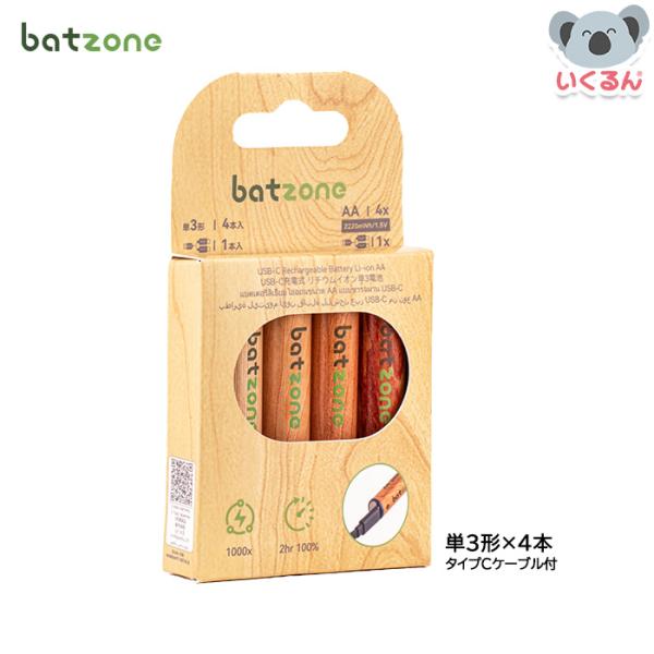 電池 充電式 USB リチウムイオン電池 単3形 4本入り タイプCケーブル付 batzone