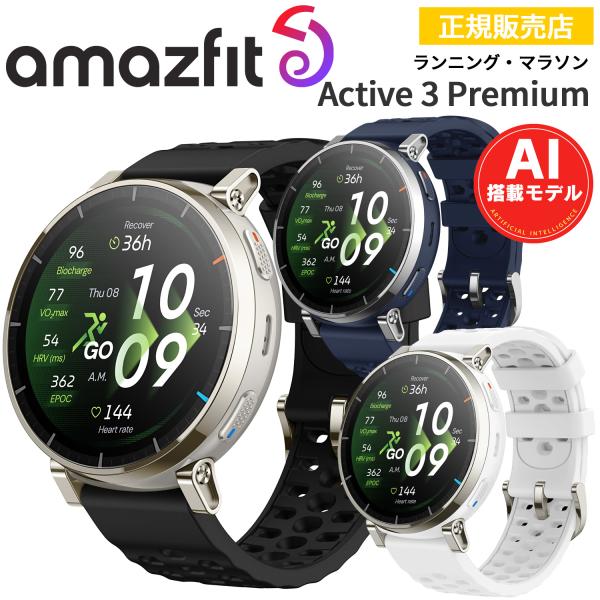 ランニングウォッチ アマズフィット Amazfit Active 3 Premium アクティブ3プレミアム スマートウォッチ AI音声操作 音声通話 通知機能 GPS マラソン