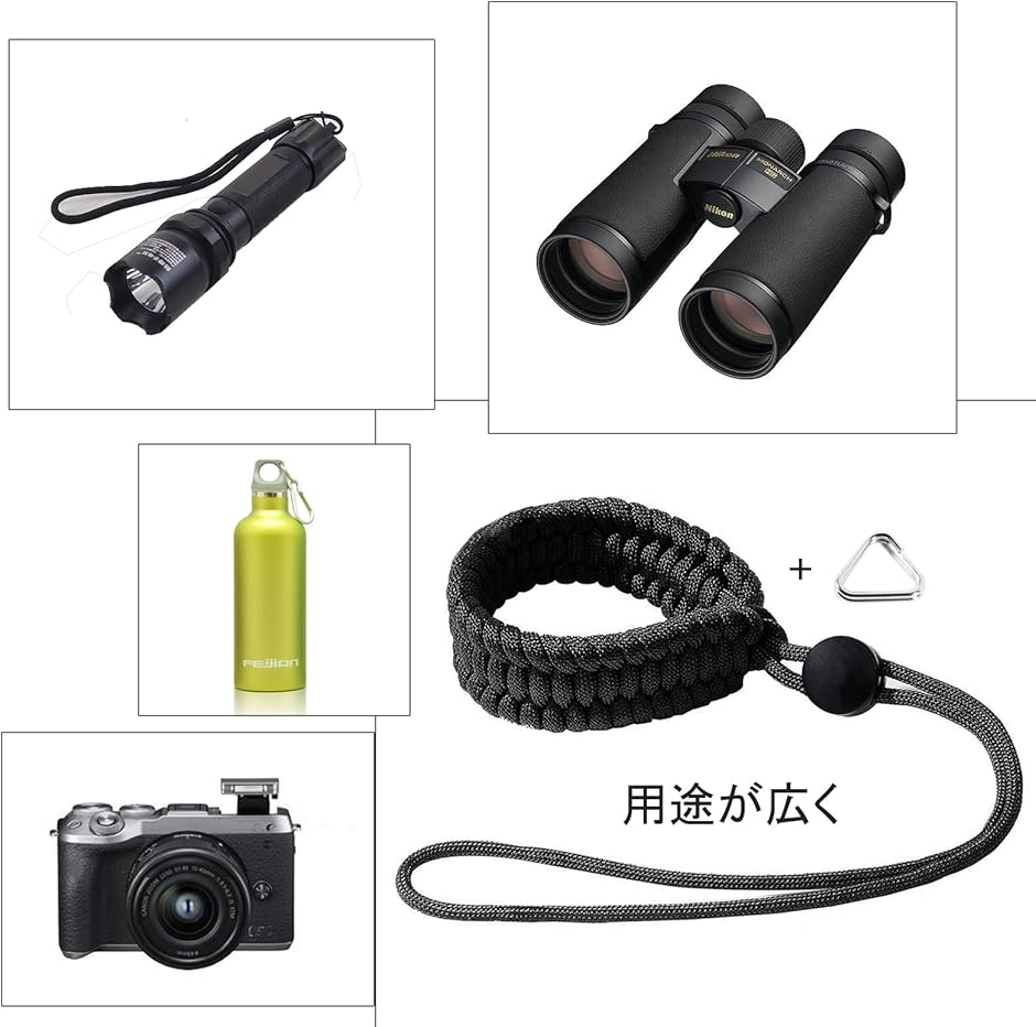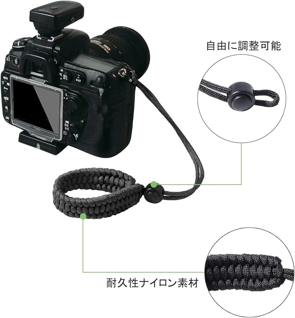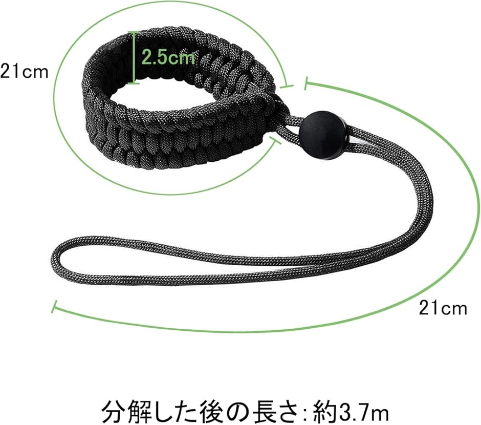 - 商品情報商品の説明説明 製品仕様 商品名:カメラハンドストラップ 素材:パラコード; サイズ:21*2.5cm; 分解した後の長さ:約3.7m; 重量:約10g 製品説明 パラコードで織られ、太くて安全で、断線のリスクを軽減します。使用時に究極の快適さを感じることができます。丸一日の写真撮影や旅行の後でも、負担を軽減し、サポートポイントを向上させることができます。 緊急時に分解した後、約3.7メートルのレスキューロープに変えることができます。 このカメラストラップは人間工学であり、ストッパーですべての手首サイズにフィットさせ、ストラップを適所に締め付けます。カメラを手のひらに近づけるようにハンドルを調整すると、長時間の写真撮影や旅行の後の疲労を軽減し、サポートを向上させるのに役立ちます。 ストラップを丸型のストラップ穴に取り付け用三角リングが二つ付属しているので、殆どの一眼レフカメラに適用します。例えばCanon、Fuji、Nikon、Olympus、Panasonic、Pentax、SonyなどのDSLRカメラにご利用できます。同時に 、Polaroidなど、一部の双眼鏡、単眼、レンジファインダー、ツールなどの他の機器にも使用できます。 パッケージ内容: カメラストラップ*1 三角リング*1主な仕様 素材:パラコード; サイズ:21*2.5cm; 分解した後の長さ:約3.7m; 重量:約10gbrパラコードで織られ、太くて安全で、断線のリスクを軽減します。緊急時に分解した後、約3.7メートルのレスキューロープに変えることができます。このカメラストラップは人間工学であり、ストッパーですべての手首サイズにフィットさせ、ストラップを適所に締め付けます。カメラを手のひらに近づけるようにハンドルを調整すると、長時間の写真撮影や旅行の後の疲労を軽減し、サポートを向上させるのに役立ちます。ストラップを丸型のストラップ穴に取り付け用三角リングが二つ付属しているので、殆どの一眼レフカメラに適用します。例えばCanon、Fuji、Nikon、Olympus、Panasonic、Pentax、SonyなどのDSLRカメラにご利用できます。同時に 、Polaroidなど、一部の双眼鏡、単眼、レンジファインダー、ツールなどの他の機器にも使用できます。