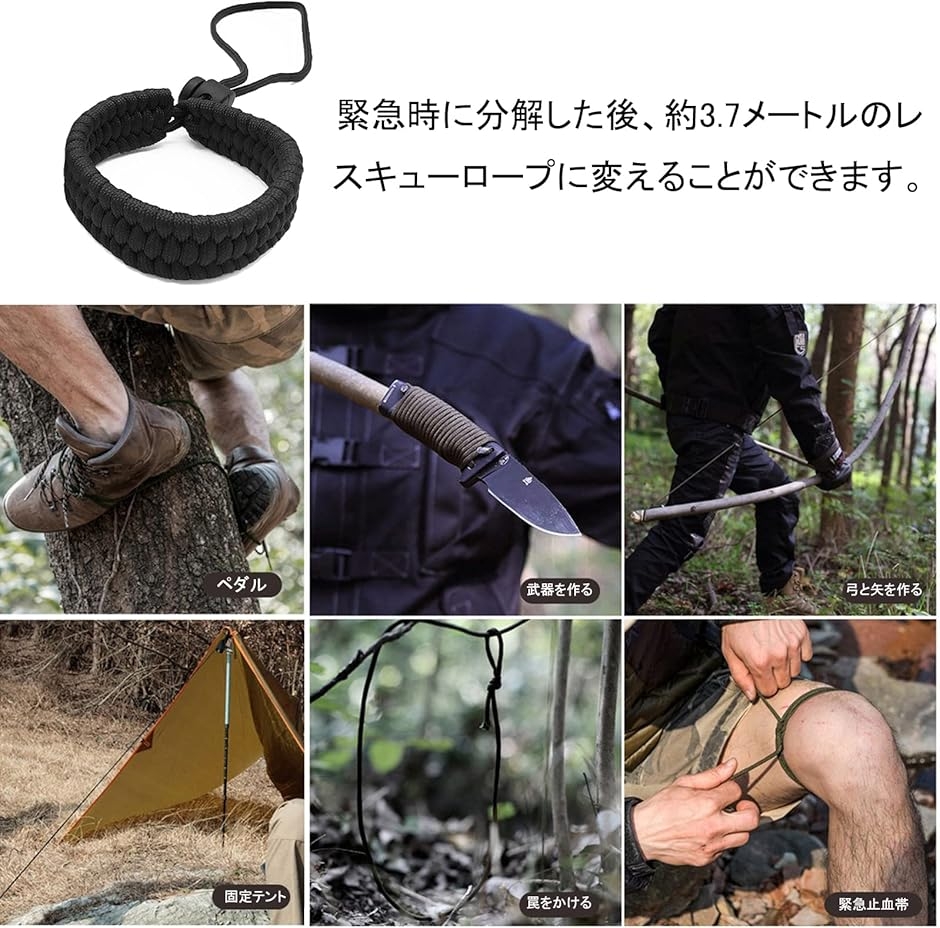 素材:パラコード; サイズ:21x2.5cm; 分解した後の長さ:約3.7m; 重量:約10g