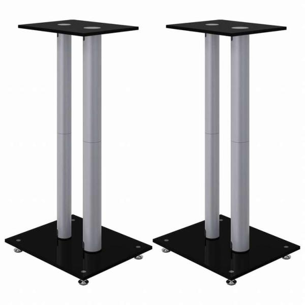 vidaXL スピーカースタンド 2点 ブラック シルバー 強化ガラス 柱2本デザイン電子機器 オーディオ オーディオアクセサリー スピーカーアクセサリ 代引不可