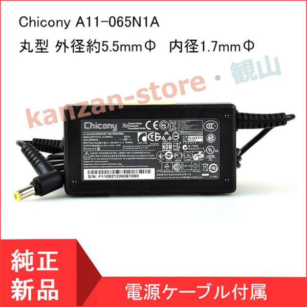 Chicony A11-065N1A ACアダプター 65W 19V 3.42A DCコネクタ:丸型 外径約5.5mmФ 内径1.7mmФ CPA09-A065N1対応