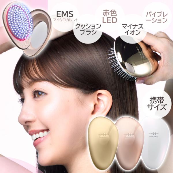 髪 ブラッシング 頭皮 マッサージ 振動機能 バイブレーション EMS マイクロカレント マイナスイオン 赤色LED リフトケア 持ち運び 携帯 コンパクト サイズ ミラー 鏡 つき 付き WAVEWAVE ウェイブウェイブ