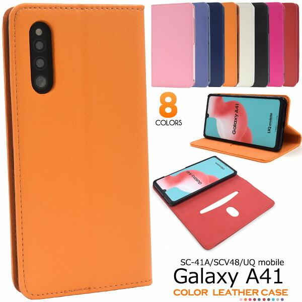 Galaxy A41 SC-41A/SCV48/UQ mobile用カラーレザー手帳型ケース