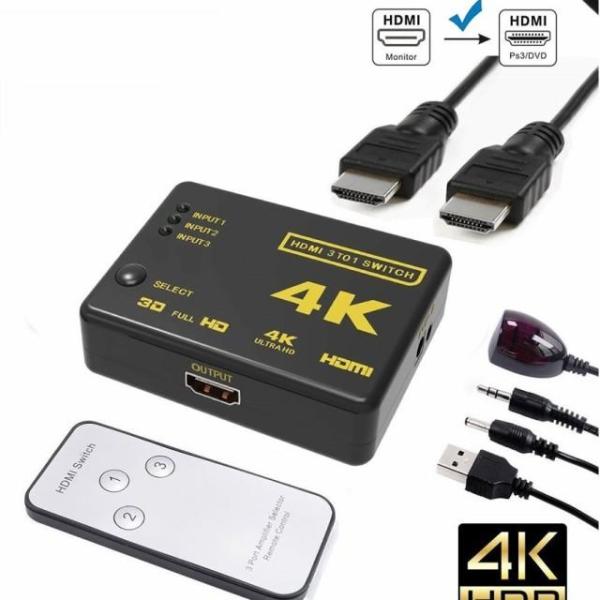HDMI切替器 4K対応 3入力 1出力 リモコン付 PC・Blu-ray・ゲーム機など対応 USB給電対応 自動 切換え HDMIポート不足解消 セレクター HDMIセレクター HDMI